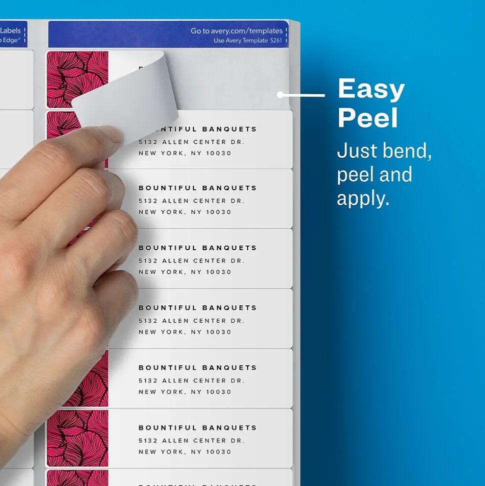- Peel and apply labels quickly with Easy Peel label technology; fold the sheet back to display the Pop-Up Edge for convenient peeling