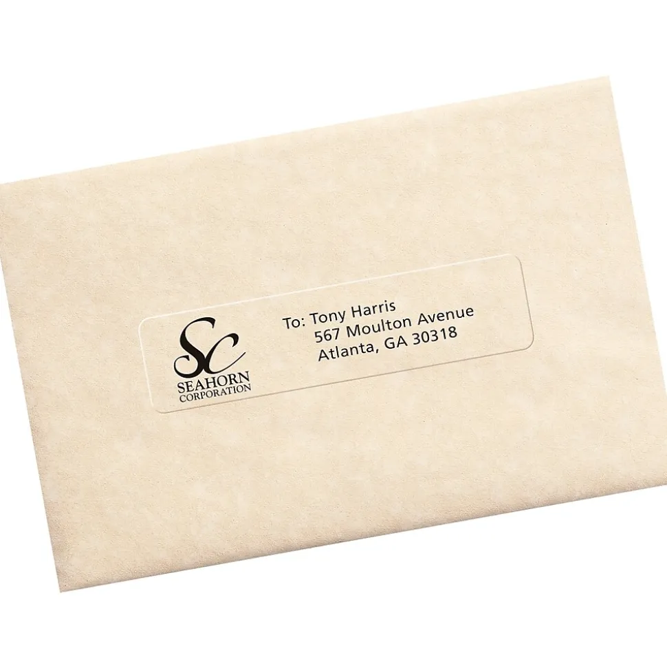Do your packages and envelopes need a shot of sophistication? This pack of Avery(R) matte clear address labels is the clear choice for sprucing up ordinary packaging and mailing. These matte clear labels basically disappear when applied to white, light-colored or textured paper. Use these clear labels on vellum envelopes and glassine bags to create a printed-on appearance. These labels also feature exclusive Avery(R) Sure Feed(R) technology to improve print alignment and avoid jamming. The blue, textured strip on the top of each sheet provides better grip for printer rollers and helps feed the sheet through your printer.