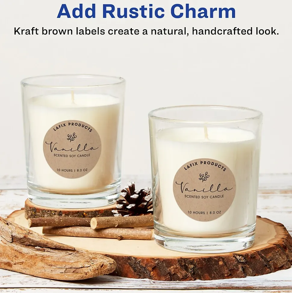 - Add a touch of rustic charm to your handmade gift or product with Avery Kraft Brown labels; create personalized gift labels, product labels, envelope seals,glass jar labels and more