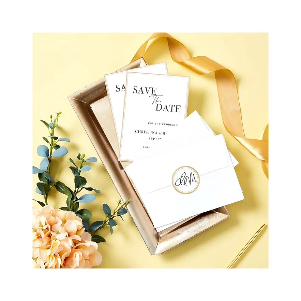 - Add an elegant touch to product branding, party favors, gift tags, mailing seals and more with eye-catching matte white labels with metallic gold borders