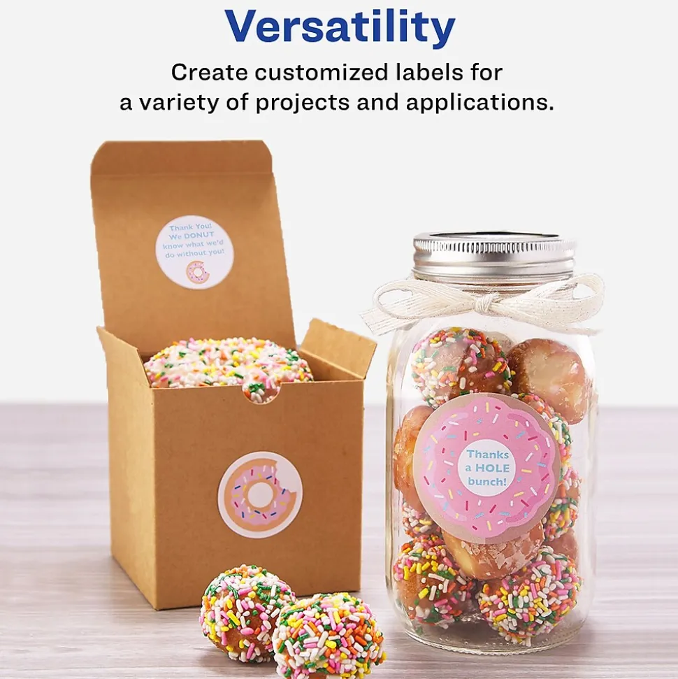 - Create professional looking labels with Avery matte white labels; personalize holiday labels, planner stickers, party favors, soap labels, wedding invitation seals and more