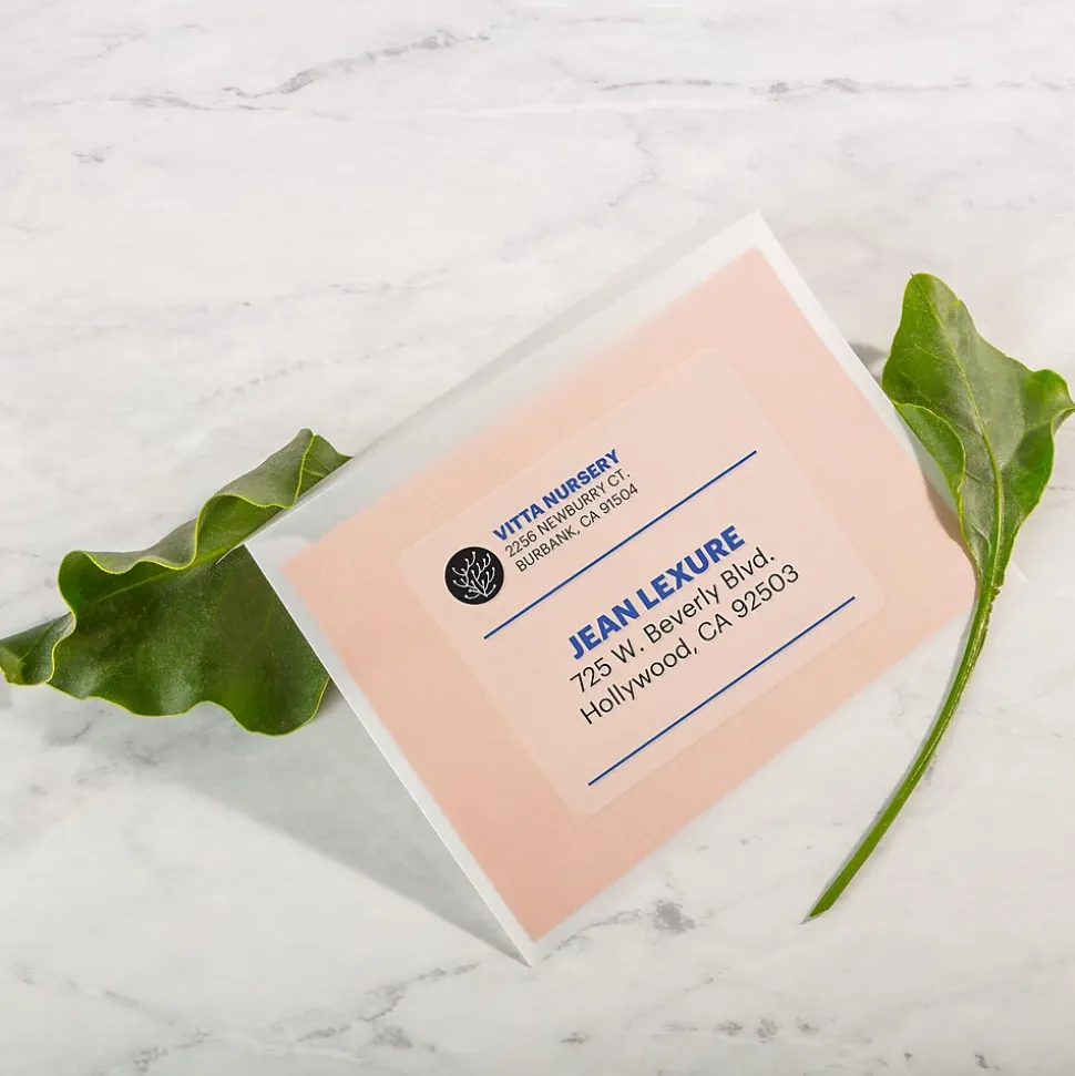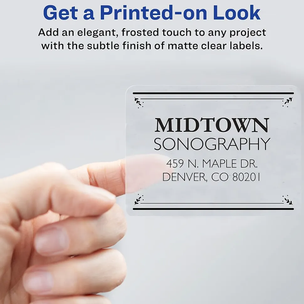 Make your brand look more professional with these Avery clear Easy Peel clear laser shipping labels. The translucent design disappears on your envelopes and boxes, creating a seamless look. Templates can be customized through Avery Design & Print and printed off using any laser printer to make labels look sharp. These labels also feature exclusive Avery Sure Feed technology to improve print alignment and avoid jamming.