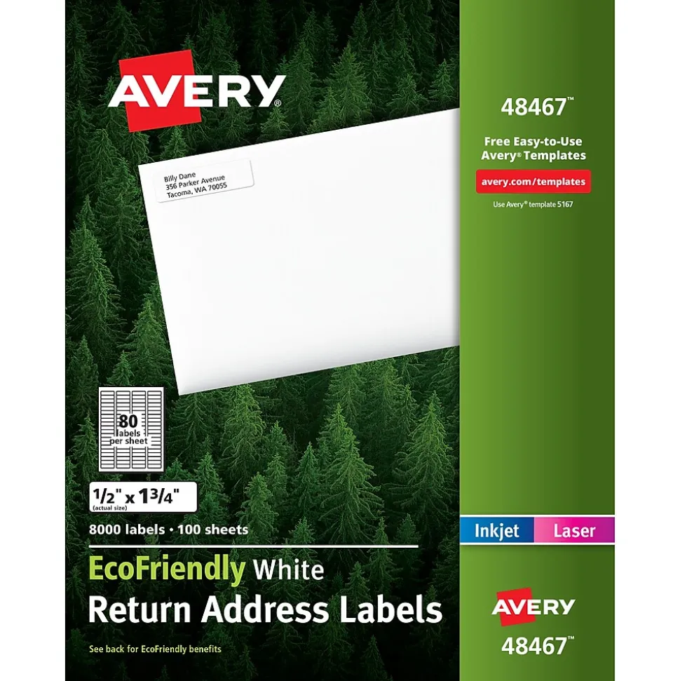 Take a step toward helping the planet with these Return Address Labels–the labels that work for you and the environment. With our free templates and designs at avery.com/print you can transform your mailing lists into customized labels in minutes. They’re also great to use personalized gifts, crafts, organization and identification. The label paper and package made of 100% recycled material, and they’re also processed chlorine free. Both are printed using soy- and vegetable-based inks and both are recyclable. It’s a little easier to do your part to leave a smaller footprint.