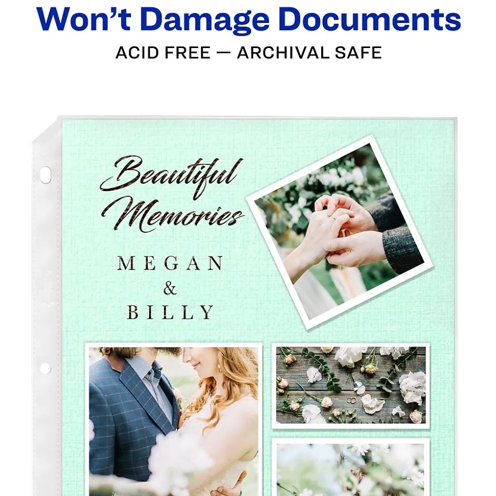 - Semi-clear, polypropylene sheet protectors won’t lift print off inserts