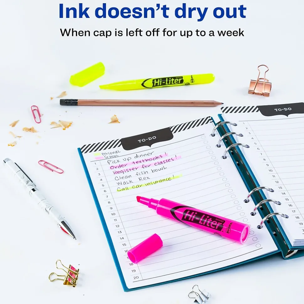 HI-LITER® Assorted desk style highlighter features chisel tip that does not fray or mush. Highlighter has durable plastic tip for smooth highlighting.