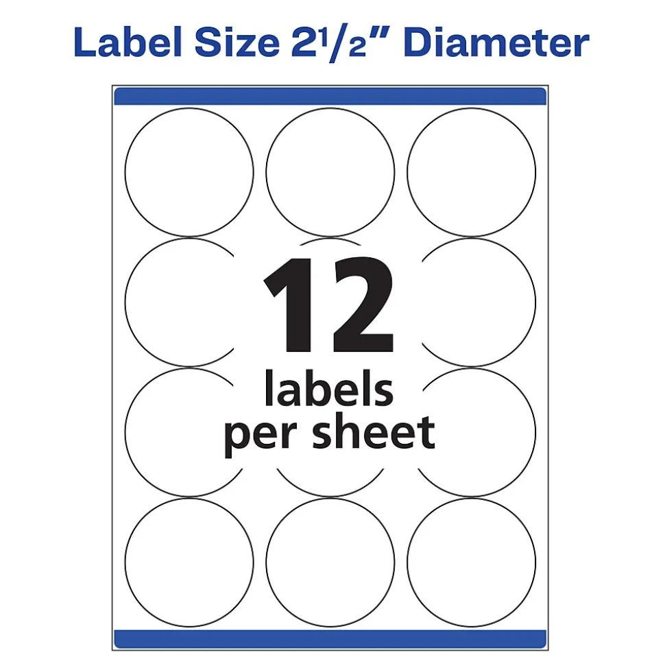 - 2 1/2″ Diameter—12 labels per sheet