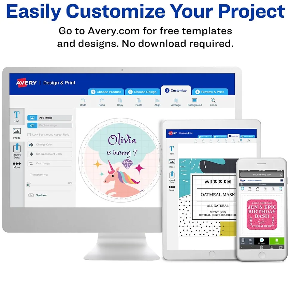 Give marketing materials a personalized touch with these Avery high-visibility laser printer labels. The crisp white color lets ink and toner stand out for easy readability, while the adhesive backings keep each sticker firmly in place. These Avery High-Visibility laser printer labels work with Avery Design & Print templates, making it easy to create one-of-a-kind messages to help brand your business.