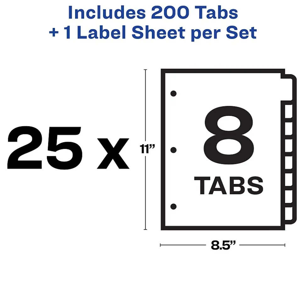 - Label all 8 tab dividers at once with the Index Maker Easy Apply Label strip that results in 25 perfectly aligned sets of tabs