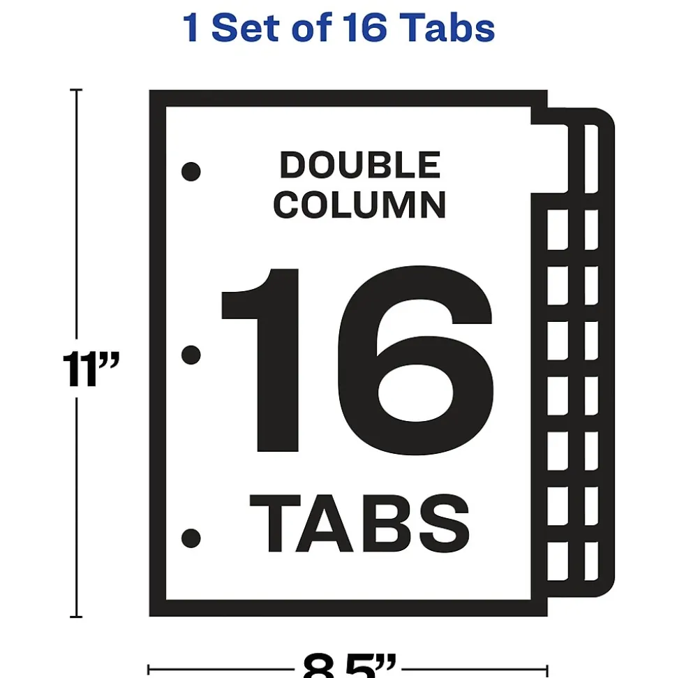 - Color: White Double-Column Dividers with Clear Tab Labels