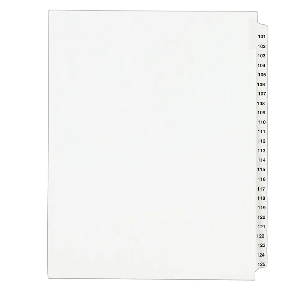 Avery Legal Pre-Printed Paper Divider Collated Set, 101-125 Tabs, White, Avery Style, Letter Size (01334)