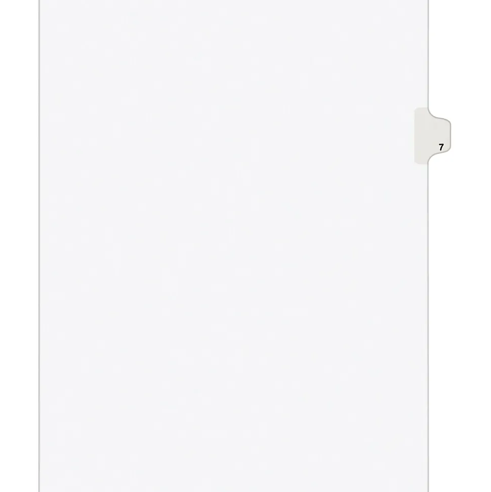 - Avery® Tab 7 Numerical individual divider set measuring 8 1/2″ x 11″ has unpunched binding edge that aids to fit perfectly with any binding system.