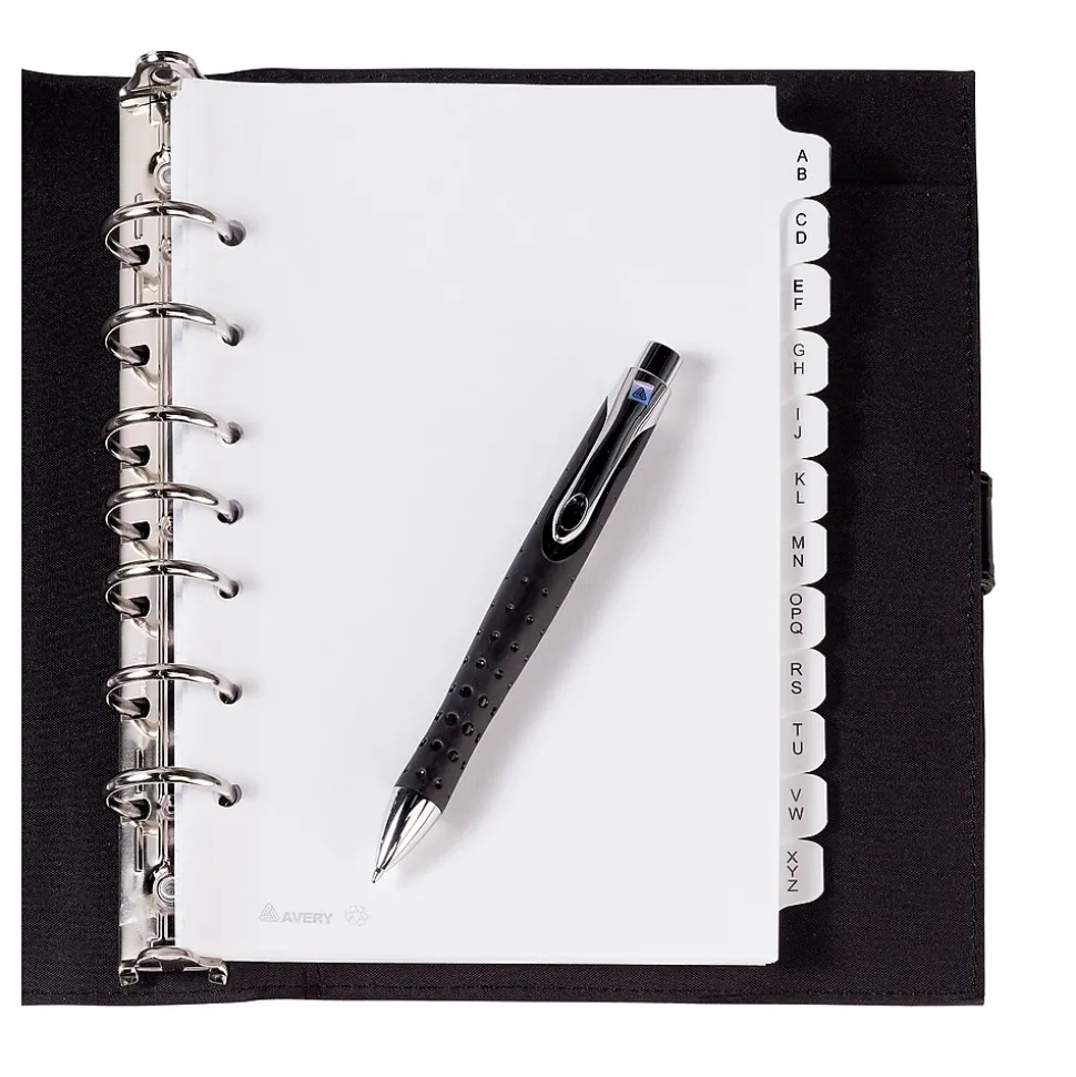 - Make it easier to plan your day and organize notes by using 5.5″ x 8.5″ 7-ring binder dividers with pre-printed A-Z tabs (2 letters per tab)