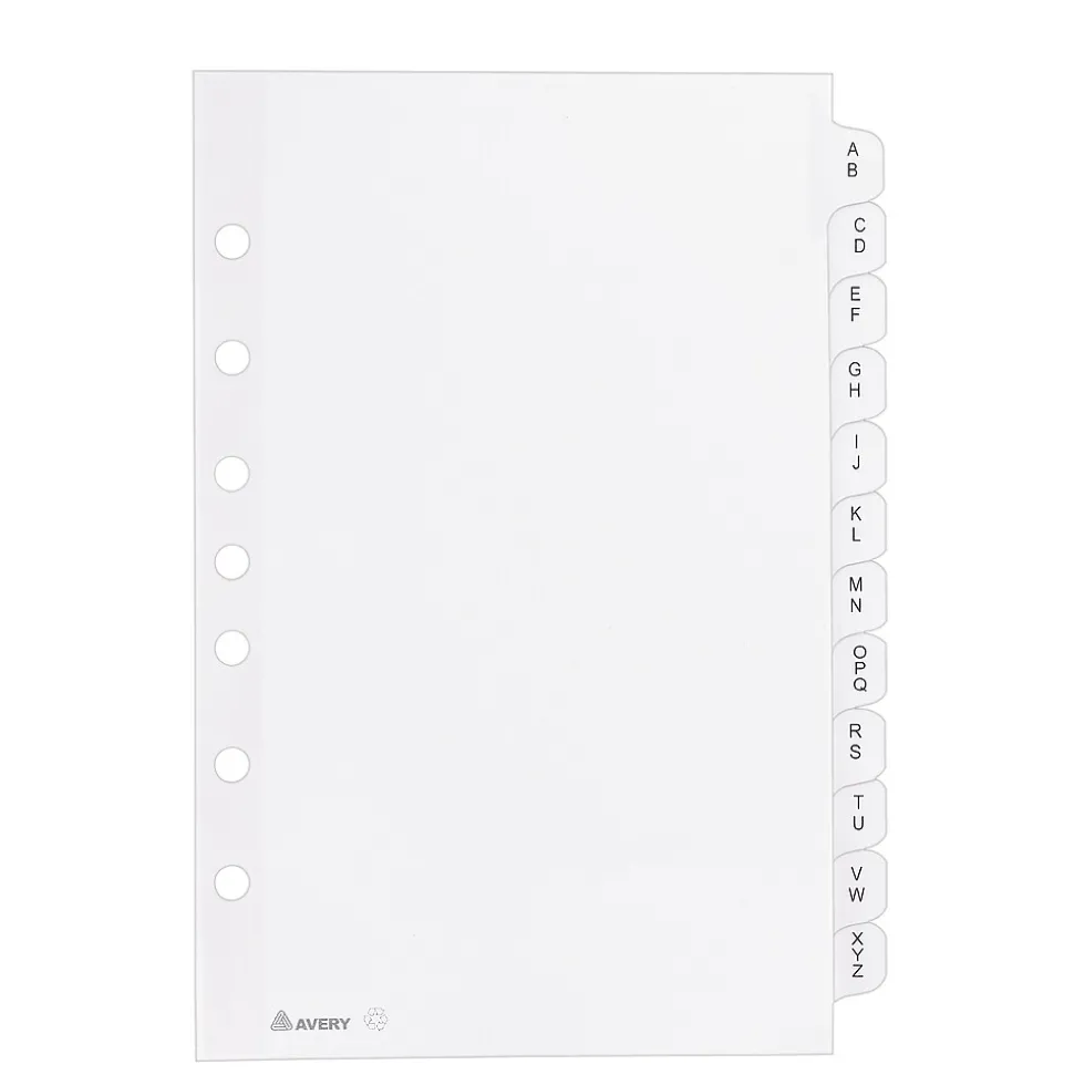 Make it easy to organize your planner from A to Z with Avery 11313 A-Z 8.5″ x 5.5″ dividers for smaller 7-ring binders. Printed in alphabetical order with two letters per tab, each tab is also printed on both sides for better visibility as you flip through your planner. Avery dividers feature tabs reinforced with clear tear proof technology that ensures that the tabs can survive everyday wear and tear. Designed to be tear-resistant, the edges of each divider are laminated with a clear border on both sides to reinforce the pre-punched binder holes so that they can withstand repeated page flipping and use. 1 set of 12 dividers is included. Whether you are a student organizing class notes, an office admin archiving files, a teacher keeping track of graded homework or a parent storing bills and other important documents, Avery dividers are the perfect way to organize your life in style.