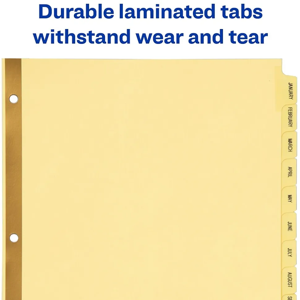 Avery Pre-Printed Paper Dividers with Laminated Tabs, Jan-Dec Tabs, Buff, Gold Reinforced (11307)