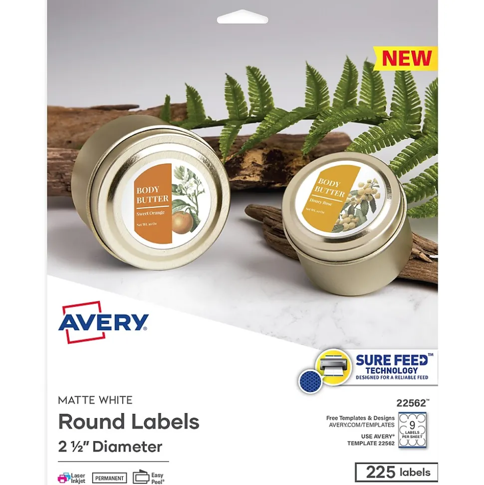 - Get a more reliable feed through your printer with Avery white round labels featuring proprietary Sure Feed technology
