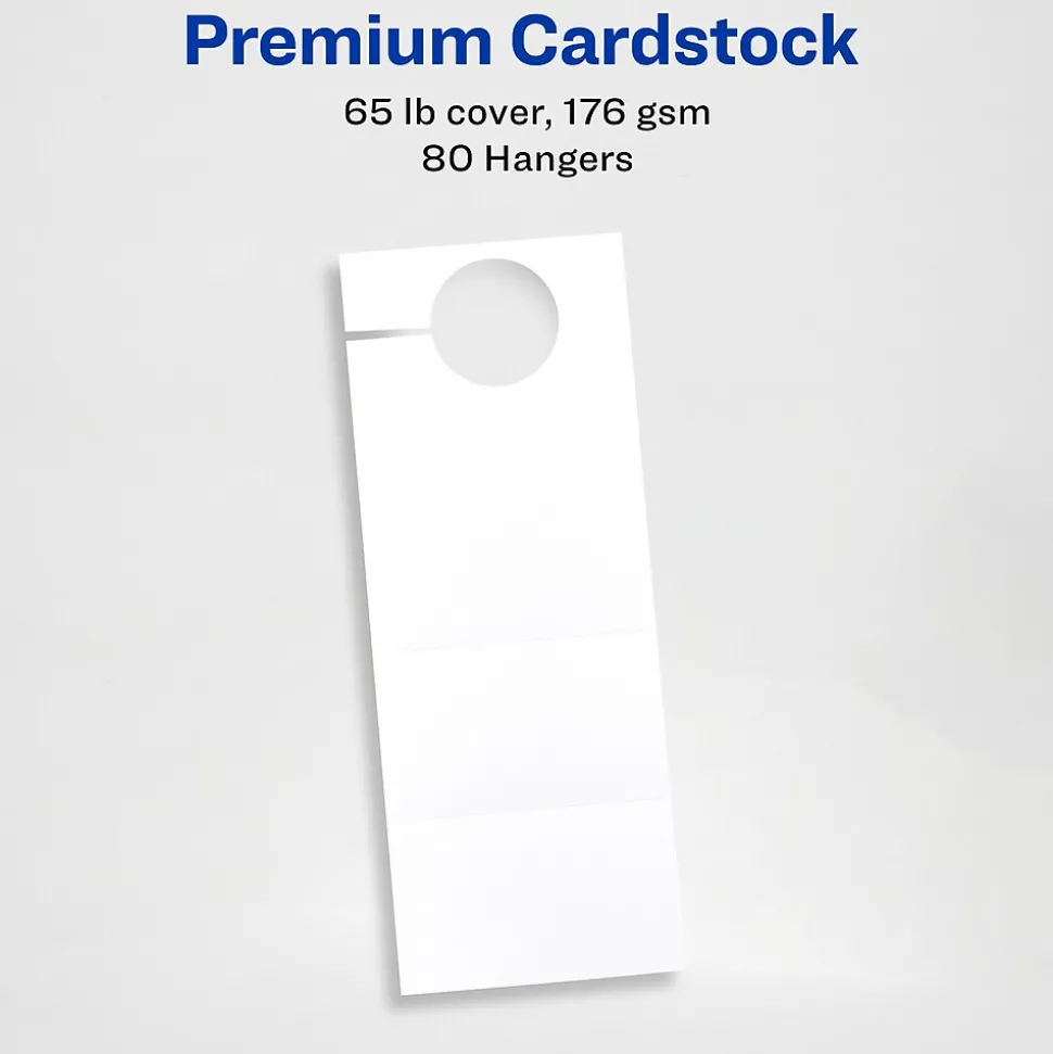 Take your business right to your customers’ front doors with Avery 16150 customizable two-sided Door Hangers with Tear-Away Cards. Made from premium 65 lb / 176 gsm heavyweight cardstock, each matte white sheet comes micro-perforated for easy separation and smooth-edged 4.25″ x 11″ door hangers with attached tear-off cards. Cards are perfect for business cards, coupons or loyalty cards that can be kept by your customers for future use. Both sides of the blank sheets are optimized for laser and inkjet printers for stunning, double-sided designs. Whether you have your own design or you’re starting from scratch, Avery Design & Print Online makes it easy to create and print customized door hangers from your own home or business. The browser-based software has everything you need to design marketing promotions, parking passes, do not disturb signs and more. Try it out today on the Avery website. You’ll be amazed at how easy it is to create smudge-free professional-quality door hangers in a matter of minutes.