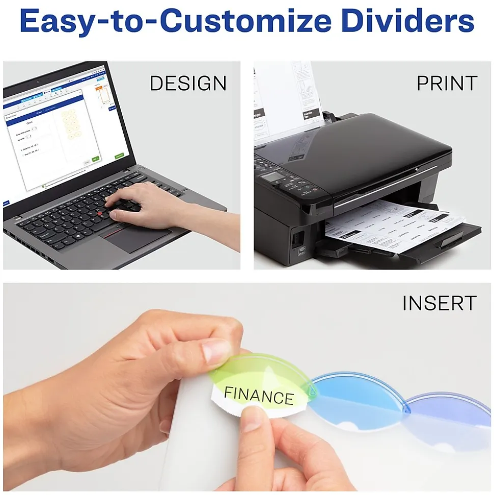 - Customize tabs for subject dividers easily using free fonts and templates on the Avery site; label inserts are compatible with laser and inkjet printers