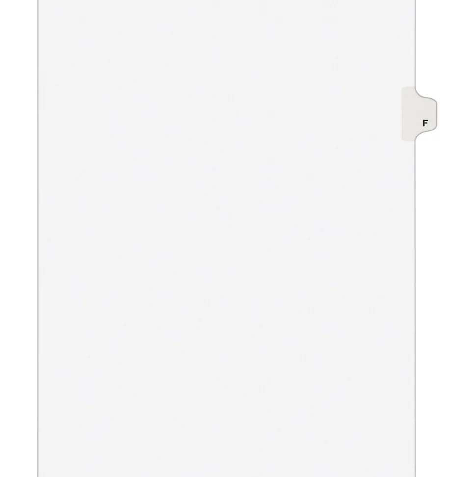 Avery® Tab F alphabetical individual set in white color is perfect choice to organize your index briefs, legal exhibits, mortgage documentation files and more.