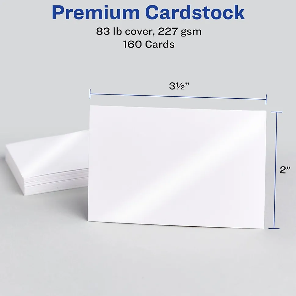 Make a shining first impression with Avery 8801 glossy white 2″ x 3.5″ business cards. Featuring an eyecatching glossy coating on one side, these cards are perfect for business cards, insert cards, loyalty/rewards cards, appointment cards and more. Avery products are also developed with unique, patented features to provide the best results. Sure Feed technology helps feed the sheets through your printer to help improve alignment. The print-to-the-edge feature allows for stunning full-bleed designs without a white border or outline. The Clean Edge design lets you easily fold and snap off each card for the smoothest, cleanest edges without frayed edges. Both sides of the sheet are printable for full, double-sided designs. Whether you’re starting with your own design or looking for something to start with, the templates and tools on the Avery website make it easy to design and print any project. For best results, use the paper setting for cards and feed each sheet one at a time through your inkjet printer.
