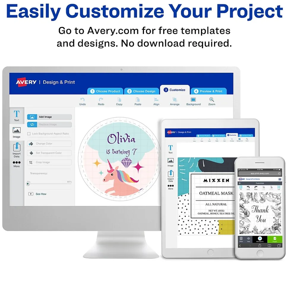 - Create customized labels in minutes by adding logos and images using free templates at avery.com/templates
