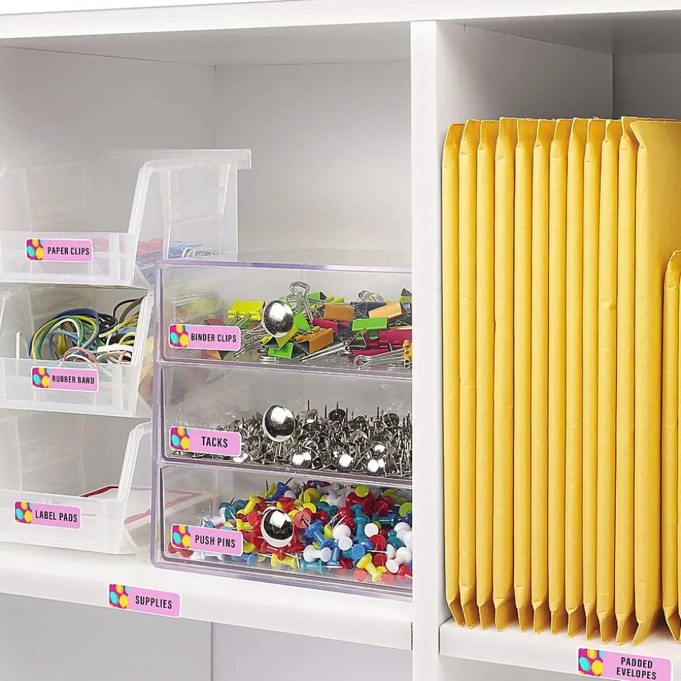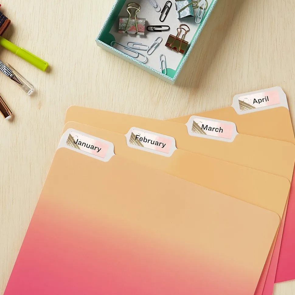 Create beautiful customizable sticker labels with full-bleed backgrounds as the print-to-the-edge feature allows you to print vivid color and sharp text beyond the cutting edge. The attractive white matte finish helps create eye-catching printable labels needed for any project. Free templates on Avery’s website make it easy to create adhesive labels in minutes. Printable Avery labels with patented Sure Feed technology provide a more reliable feed through your printer, reducing misalignments and jams. The label’s permanent adhesive allows it to stick and stay onto envelopes, cardboard, paper, plastic, glass, tin and metal. These rectangle labels are perfect for return address labels, file folder labels, organization labels, small bin labels, and more