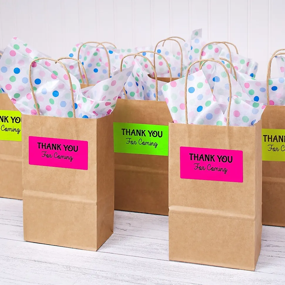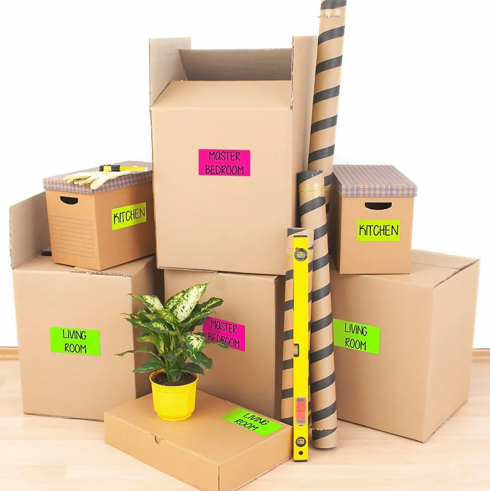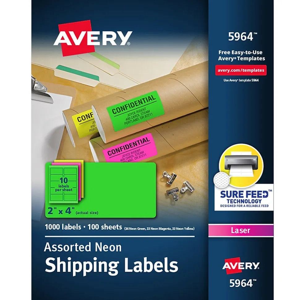 Make your next project or shipment stand out with the assorted pack of neon green, pink, and yellow 2 x 4 labels. Use the bright neon labels to create product labels, student name tags, beauty product labels, Christmas mailing labels, food labels, barcode labels, price labels, return labels, and more. Expect high-quality, smudge free printing results with neon shipping labels from Avery that are optimized for laser printers.
