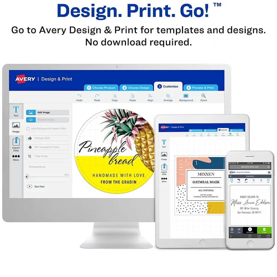 - Easily customize your printable blank labels with your own text and graphics or use the free templates and designs on the Avery site