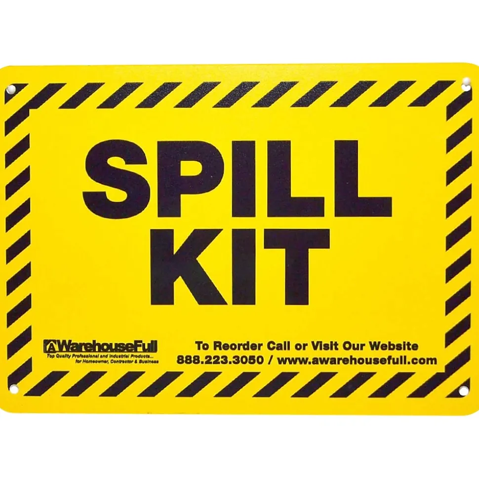 - 55-piece kit includes: 15″ x 19″ universal spill pads (40 pcs.), 3″ x 4′ universal sorbent socks (3pcs.), 18″ x 18″ universal sorbent pillows (2 pcs.), chemical gloves (1 pc.), disposal bags (5 pc.) safety goggles (1 pc,) UN rated drum (1 pc.), Spill Sign (1 pc.)