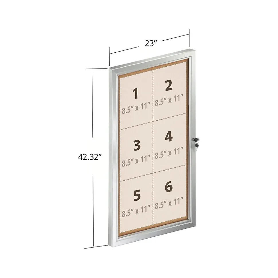 The Azar enclosed cork bulletin board with lock and key is a great way to showcase your messages and advertisements. The lock and key ensure that signage and items contained inside can only be accessed by those with the authority to do so. This bulletin board has a shatter-resistant polycarbonate locking door, inner self-healing cork, and durable aluminum frame. The tackable board is perfect for school or business environments as well as houses of worship to display announcements, specials, memos, directions, rules, and messages. Includes mounting screws and plugs for easy wall mounting, a set of 24 pushpins for use on the inner cork board, and two keys. Suitable for indoor and outdoor use. Please note: this product is not intended for use in stormy weather, including high winds, rainstorms, extreme heat, freezing temperature, or snow storms.