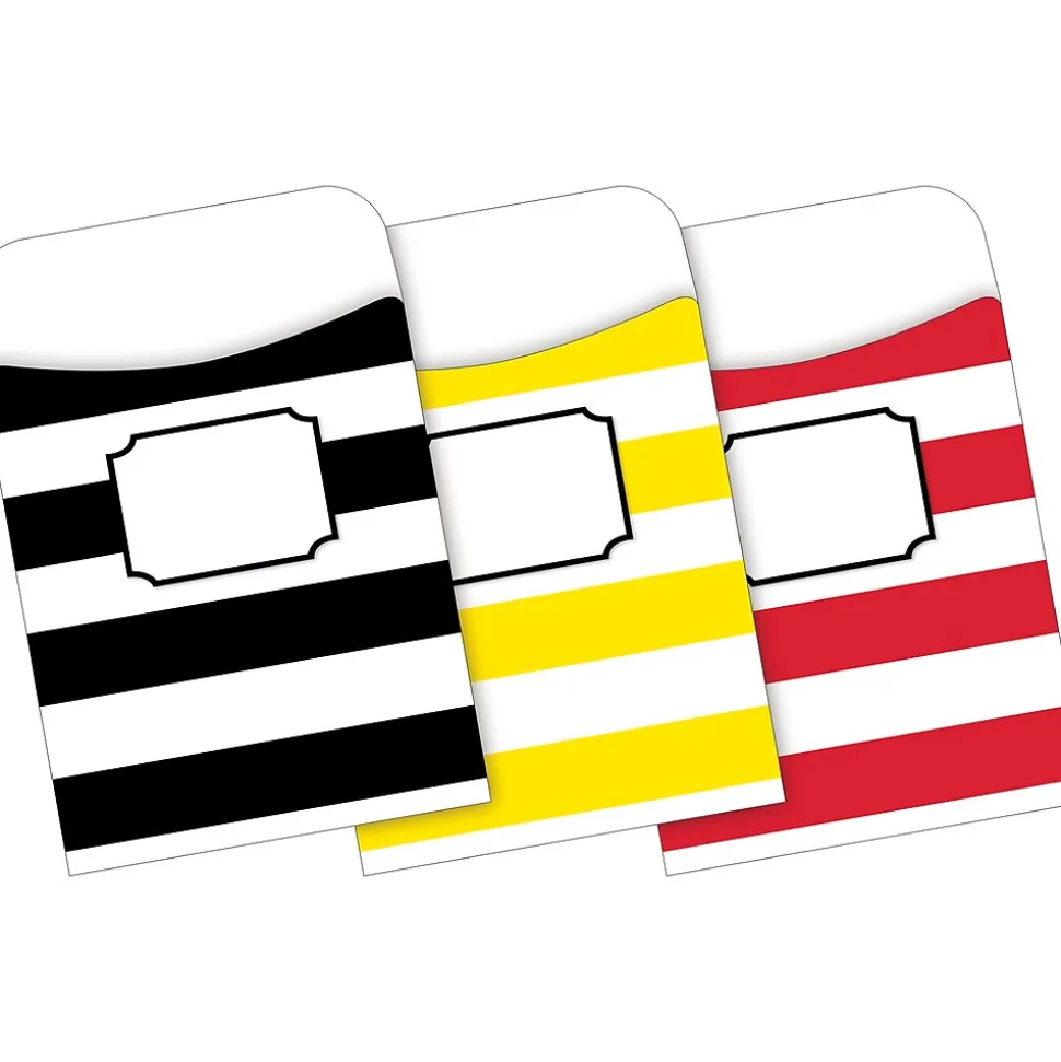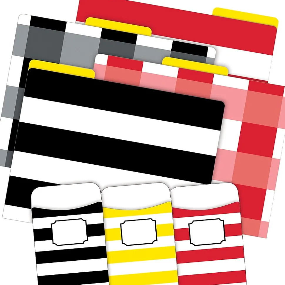 - Set includes 12 fashion file folders — 3 each of 4 designs and 30 peel & stick coordinating library pockets — 12 each of 3 designs.