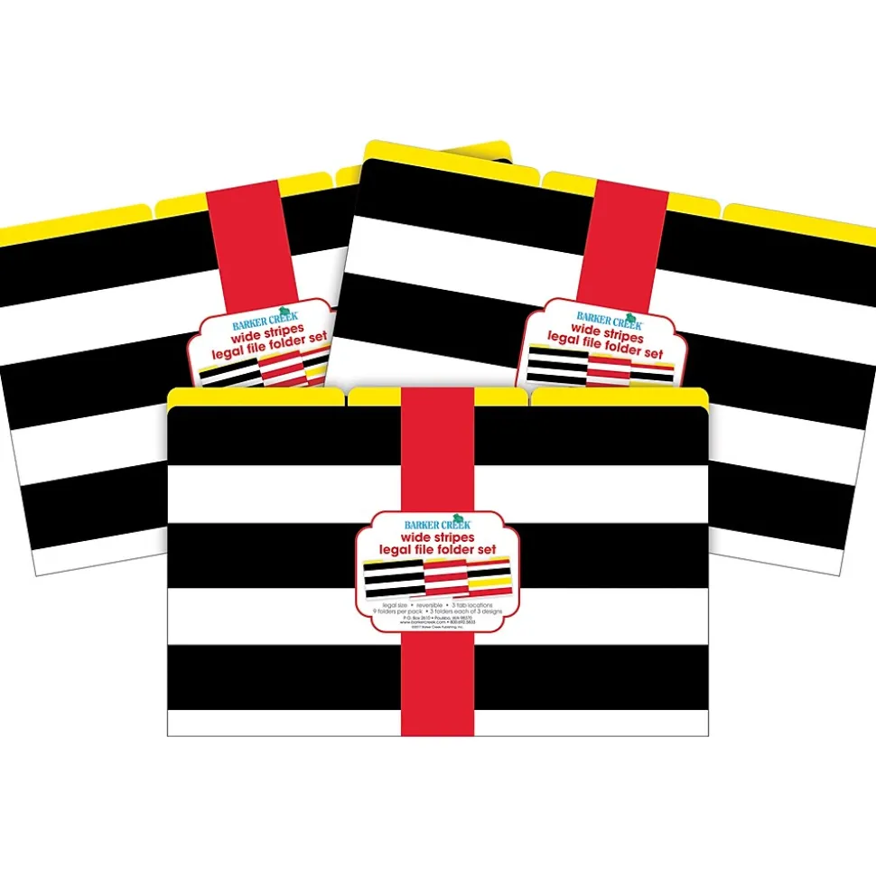 Barker Creek’s Wide Stripes legal-sized fashion file folders are raising the style bar for those of us who use legal folders at work, school, and home. Each set includes 27 beautifully designed legal-sized file folders – six folders each of three on-trend designs. The folders are 1/3 cut and printed on durable 12 pt. stock. Fully reversible, each folder has a colorful design on one side and a vibrant, solid color on the reverse side – perfect for color-coding your files, making file folder games and lap books. The possibilities are limited only by your imagination! Coordinating products available: Search Barker Creek Buffalo Plaid & Wide Stripes.