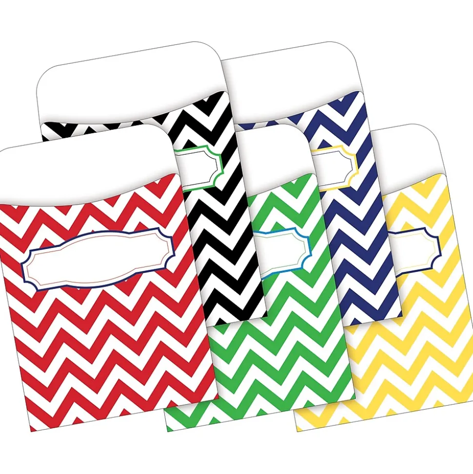 Barker Creek’s Chevron Nautical On-Trend Organizer Set will help you stay on task in style! Included in this popular set are 12 letter-sized fashion file folders — three each of four beautiful designs, 30 peel & stick coordinating library pockets — ten each of three colorful designs, and 50 sheets of coordinating computer paper. The file folders are printed on sturdy 12 point cardstock, feature 1/3 cut tabs, and are reversible. Each pocket has two self-adhesive peel & stick strips on the back and measures 5.1875″ H x 3.5″ W. The library pockets are great for organizing flash cards, hall passes, file folder game pieces, spelling word lists, library cards, reading logs, and more! The coordinating paper is compatible with most laser and inkjet printers and measures 8.5″ x 11″. Say goodbye to boring old office supplies and hello to fun and fashion! Coordinating products available: Search Barker Creek Chevron.