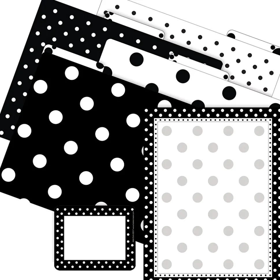 Barker Creek’s Black & White Dots Get Organized Kit will help you stay on task in style! The file folders are printed on sturdy 14 point cardstock, feature 1/3 cut tabs, and are reversible. The self-adhesive labels measure 3.5″ x 2.75″ and work well as gift tags, name badges, address labels, and so much more! The coordinating paper is compatible with most laser and inkjet printers. Say goodbye to boring old office supplies and hello to fun and fashion! Coordinating products available: Search Barker Creek Dots.