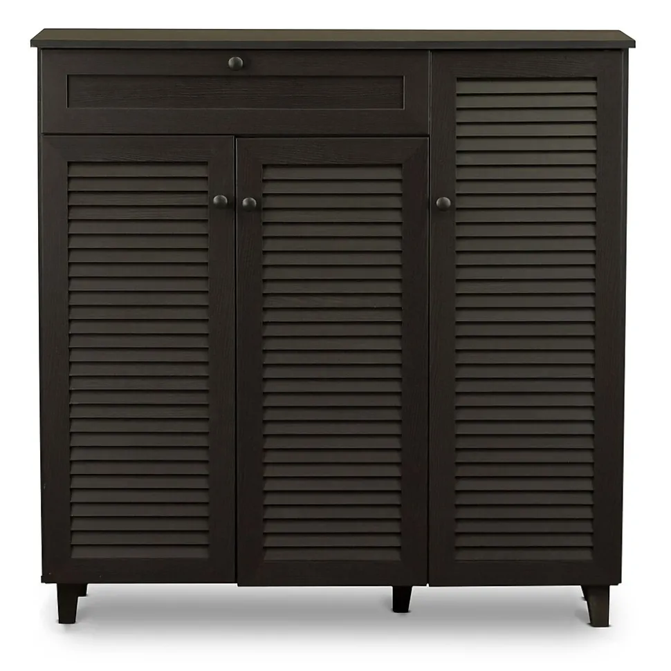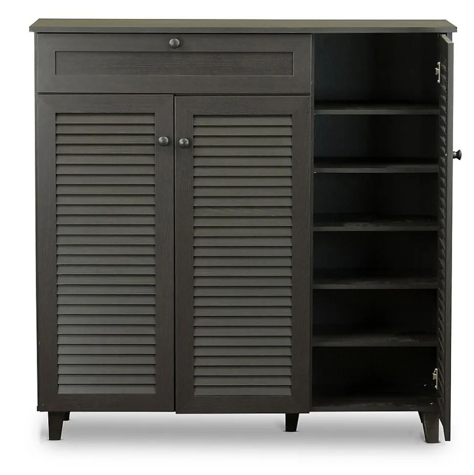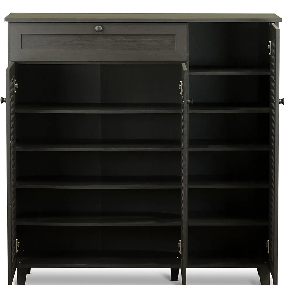 Storage and style.Our Pocillo wood shoe storage cabinet offers plenty of places to stow footwear without forsaking fashion.