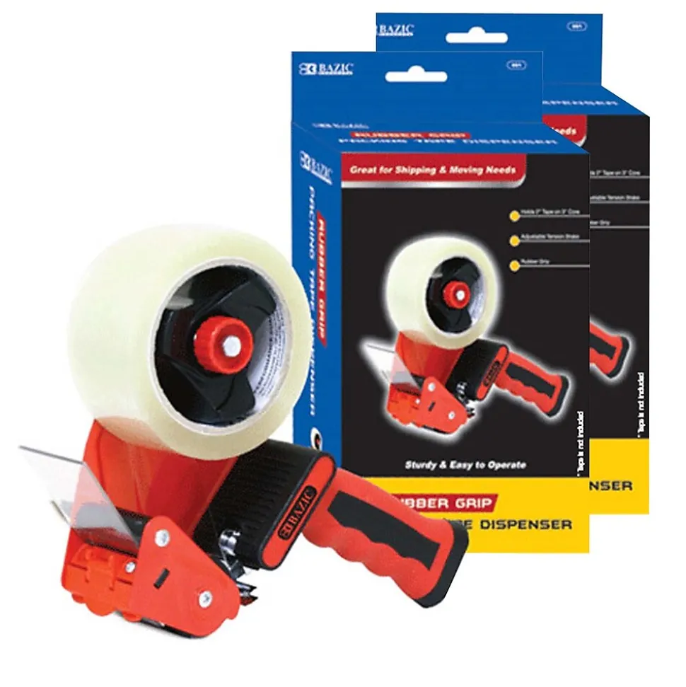 Rubber grip premium comfort packing tape dispenser holds 2″ tape on a 3″ core. Packing tape is not included. Side loading for convenience. Keeps tape easy to get when you need it. Pack of 2 tape dispensers.