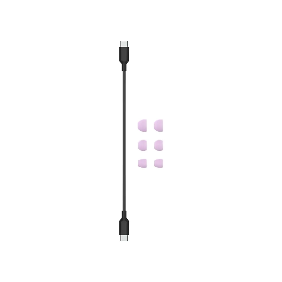 - Package includes: three pairs of silicone ear tips, charging case, and USB-C to USB-C charging cable
