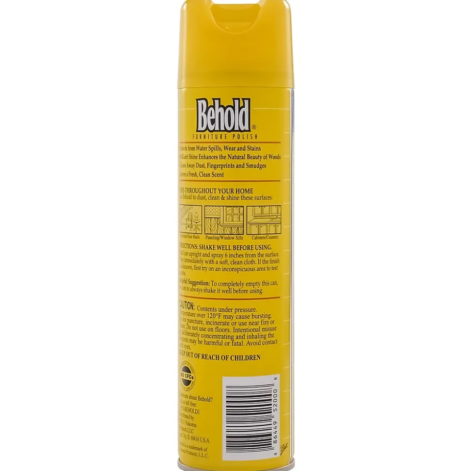 BeholdĀ® Furniture Polish with Lemon Scent is specially designed with wood in mind. Its time-tested formula protects wood against water spills, wear and stains, leaving behind a brilliant shine and a fresh lemon scent.
