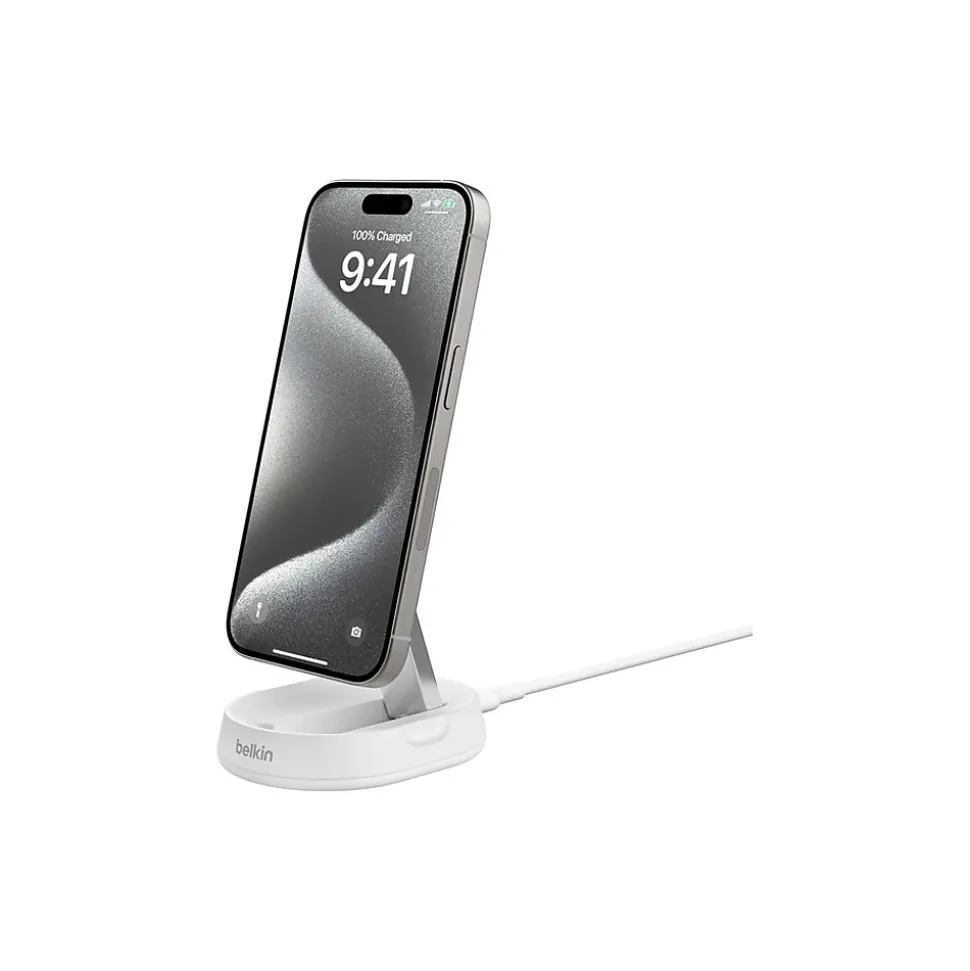Fast-charge your iPhone or other Qi2-compatible device up to 15W with the Belkin BoostCharge Pro wireless charging stand. Qi2 technology optimizes energy usage and safeguards your device’s battery life. Use the adjustable tilt in either pad or stand mode. Apple users can take advantage of StandBy compatibility.