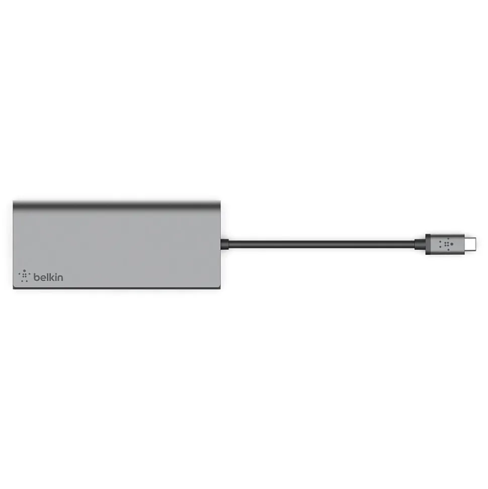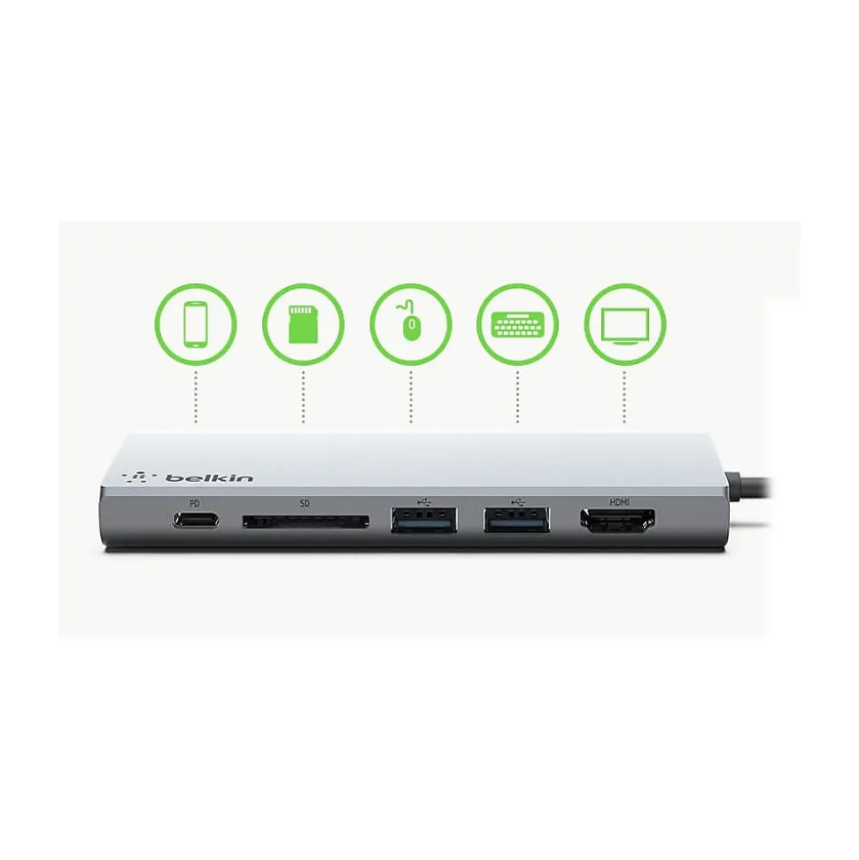 This Belkin Multimedia USB Type-C multiport hub with up to 5Gbps bandwidth is the perfect all-in-one solution to connect your USB Type-C laptop to multiple devices. Lead a seamless presentation or create your ultimate workstation, with the USB Type-C multiport hub you can connect projectors, 4K 30Hz monitors, SD cards, and thumb drives to your laptop. It also supports pass-through charging up to 60W, eliminating the need to choose between port expansion and power. Plus, with 1Gb Ethernet port, you’ll always have a safe and secure internet connection.