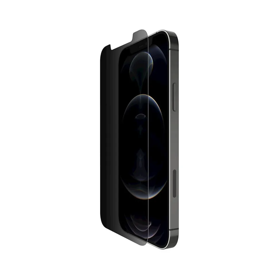 This double ion exchange glass screen protector made for iPhone 12/12 Pro devices delivers ultimate durability and resilience. The glass contains an antimicrobial agent to protect the product from microbial growth, without sacrificing touch-screen response or clarity. This Belkin SCREENFORCE UltraGlass privacy screen protector made with German-engineered technology and delivers the evolution of durability and resilience in screen protection for iPhone. The glass is chemically strengthened by double ion exchange for ultra impact protection and gives you full-screen privacy in portrait mode along with the flexibility of sharing your screen in landscape mode.