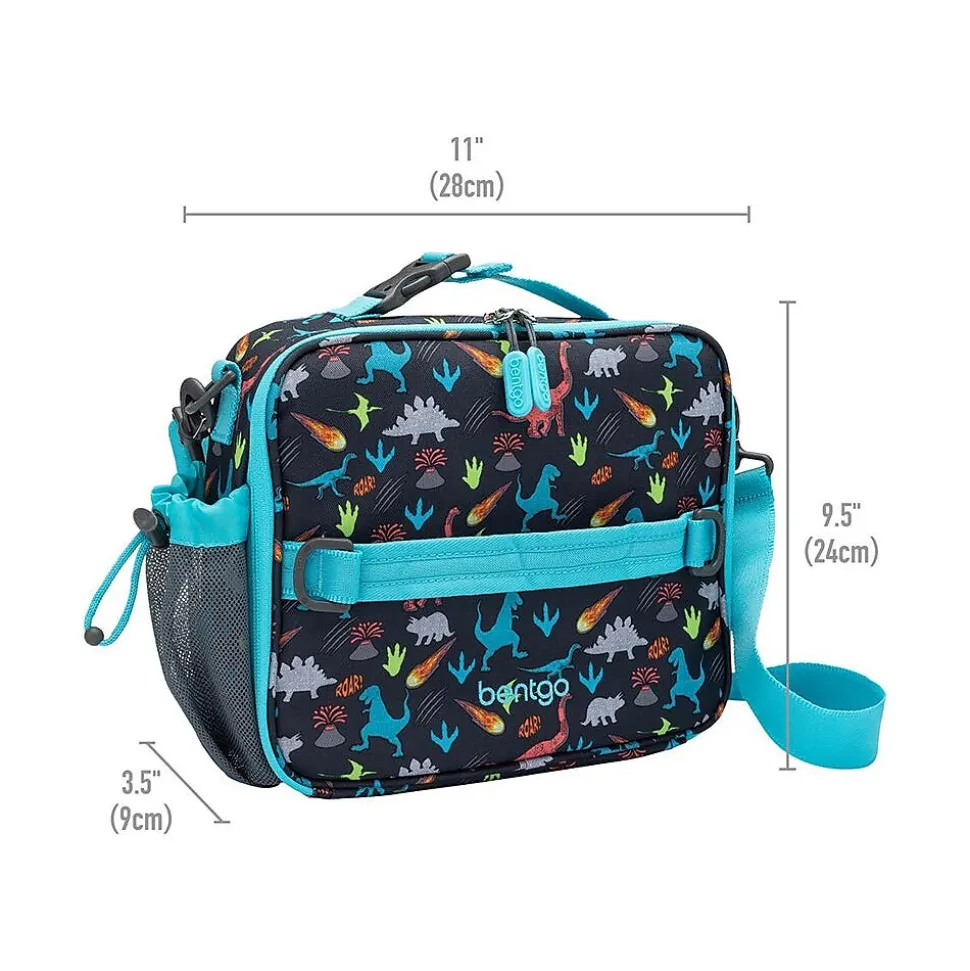 The bentgo Kids Prints lunch bag makes carrying your lunch fresh, easy, and colorful. This lightweight and durable double-insulated lunch bag gives kids a chance to express themselves in style. The bentgo lunch bag is ready to hold the healthiest treats. The bag is great for all kids, boasting a variety of versatile carrying options. For older kids, an adjustable carrying strap is perfect for shoulder or cross-body transport. For vertical or horizontal options, the adjustable buckle handle and carrying strap fit into your kid’s hand with comfort. For smaller children, or those looking for a hands-free option, the adjustable buckle doubles as an optional attachment, while two D-hooks across the front of the lunch bag can be attached via carabiner to a backpack.