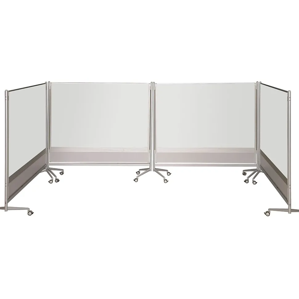 Best-RiteĀ® Mobile dry erase dividers measuring 6′ x 6′ with porcelain surface has unique leg design that allows panels to be joined with minimal gapping. Dividers has partitions that allows you to divide organize and customize a work or display area.