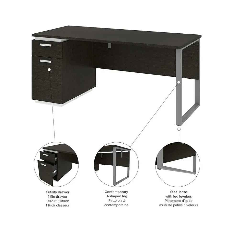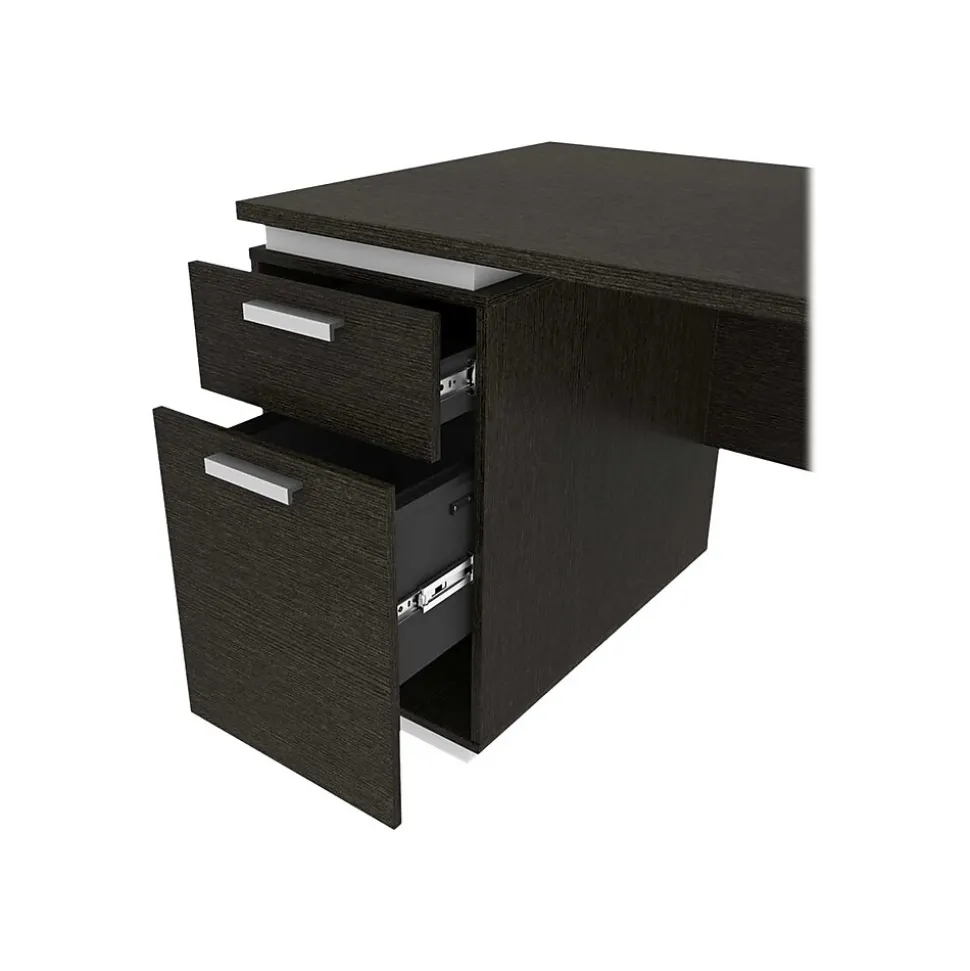 The bestar Aquarius collection provides solutions for organizing your office in style. With its clean lines and metal accents, this contemporary pedestal desk will help you get that wow effect to impress clients and employees alike. In addition, the desk’s highly functional design will contribute to a more productive and better organized office environment.