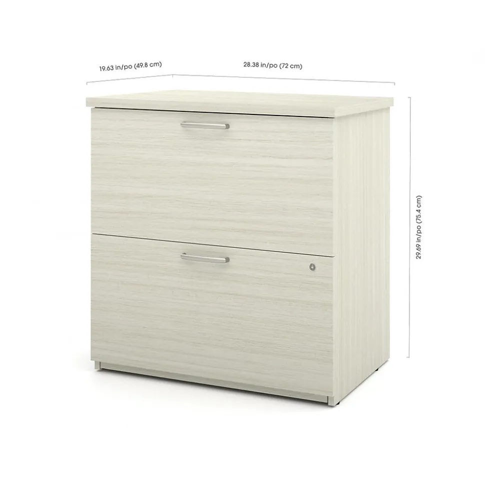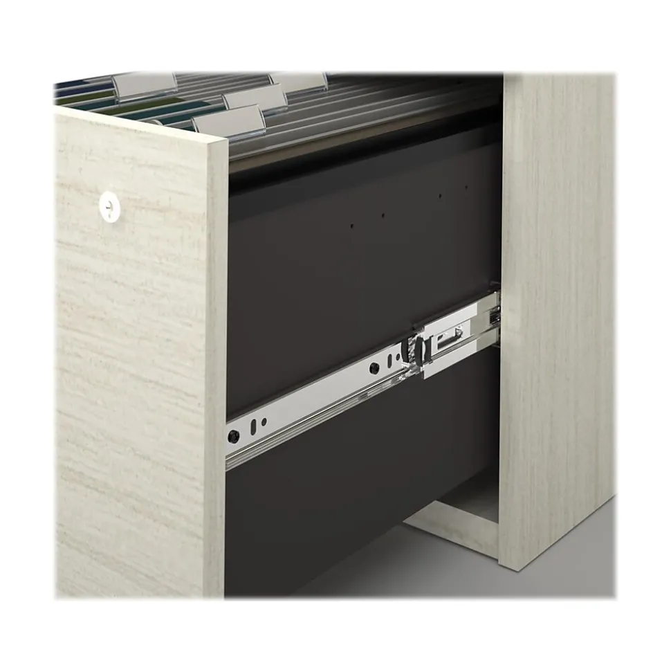 - Lateral file cabinet offers two lockable file drawers that glide on smooth ball bearing slides and accept legal-, letter-, and A4-size paperwork