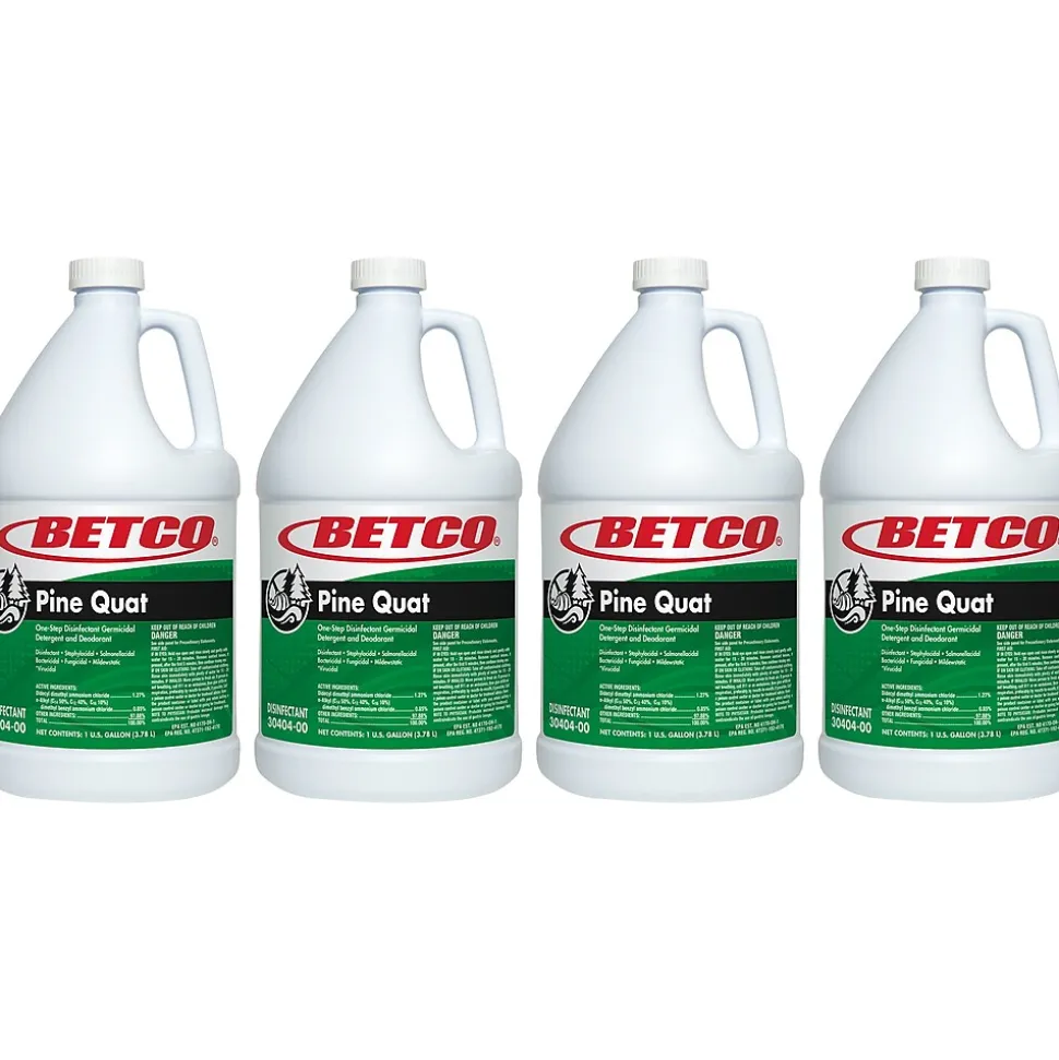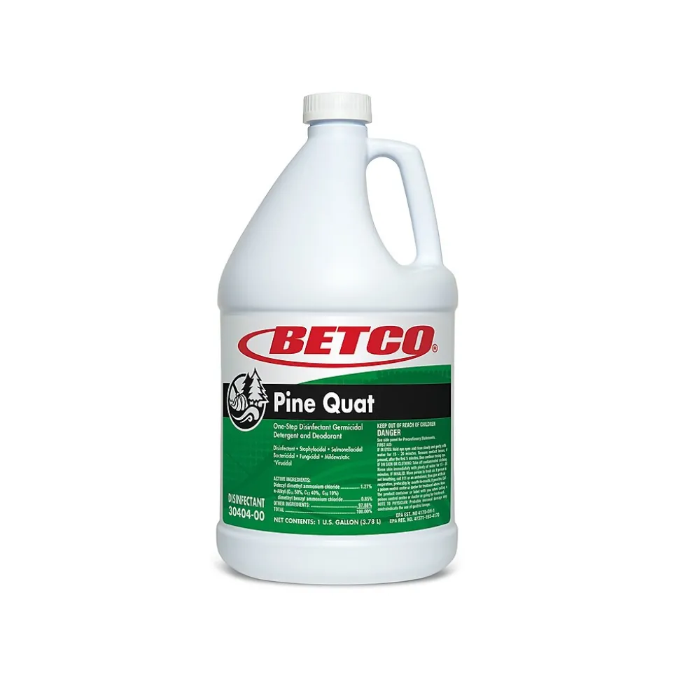This Betco Pine Quat neutral pH disinfectant cleans and deodorizes without leaving a film or dulling surfaces. The disinfectant is simple to use, cleans, deodorizes, and disinfects in one easy operation. No harsh alkali to attack floor finish. Effectively controls the growth of mold and mildew, plus the odors caused by them, when applied to hard, nonporous surfaces such as walls, floors, and table tops.