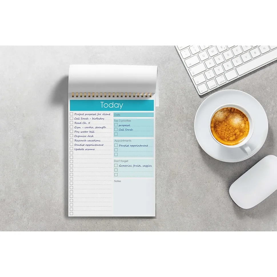- Tear off sheets as needed or keep them intact to be able to look back on your prior tasks with the double-wire spiral binding on the top