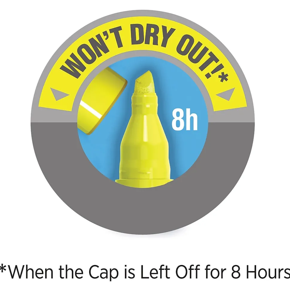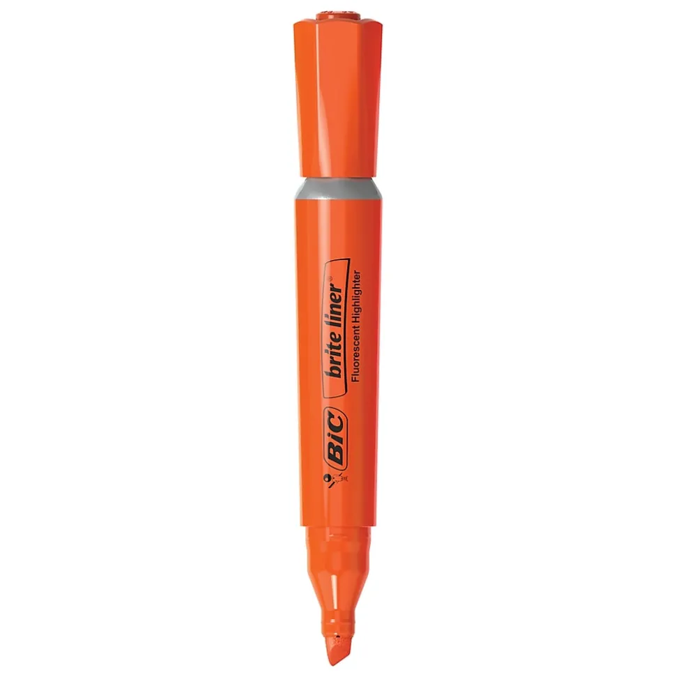 Whether you’re organizing notes or underlining passages in a textbook, BIC Brite liner highlighters make highlighting a breeze. These tank-style highlighters deliver super-bright fluorescent ink to help emphasize the important parts of documents, books, and notes. Each highlighter creates marks that stand out on the page, and its chisel tip allows for smooth transitioning between precise underlines and broad coverage sweeps. Built with heavy use in mind, Each ACMI-approved, non-toxic highlighter contains a large supply of ink and won’t dry out for up to eight hours if left uncapped. BIC Brite Liner highlighters make highlighting fun and are great for use at home, school, or the office.