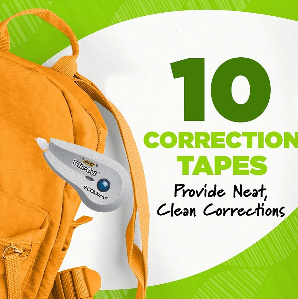 - One package contains 10 BIC Wite-Out Brand correction tape dispensers with 19.8 feet of tape each