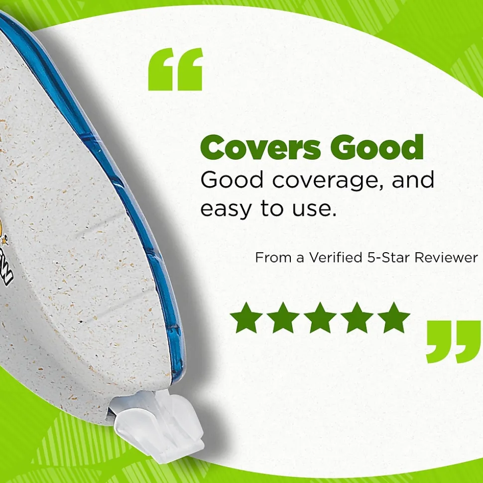 This Wite-Out Brand correction tape is not only made from 56% recycled plastic excluding tape, but the paperboard used in the packaging is made up of 100% recycled content and is recyclable. Each convenient dispenser contains 19.8 feet of white correction tape so you can draw or write safely knowing even if you mess up, there’s a fix. The BIC correction tape goes on dry, allowing you to make instant corrections with no mess and no waiting time, while the convenient size allows hands of all sizes to make quick and accurate corrections. Suitable for lefties and righties, these brightly colored correction tape dispensers are compact enough to fit in any bag so students can easily correct their work. Looking for larger quantities of eco-friendly school supplies? Choose this bulk pack of correction tape, which contains 2 BIC Wite-Out Brand tapes. Pick up BIC Ecolutions Wite-Out Brand correction tape for a high-quality, affordable tape you can trust.