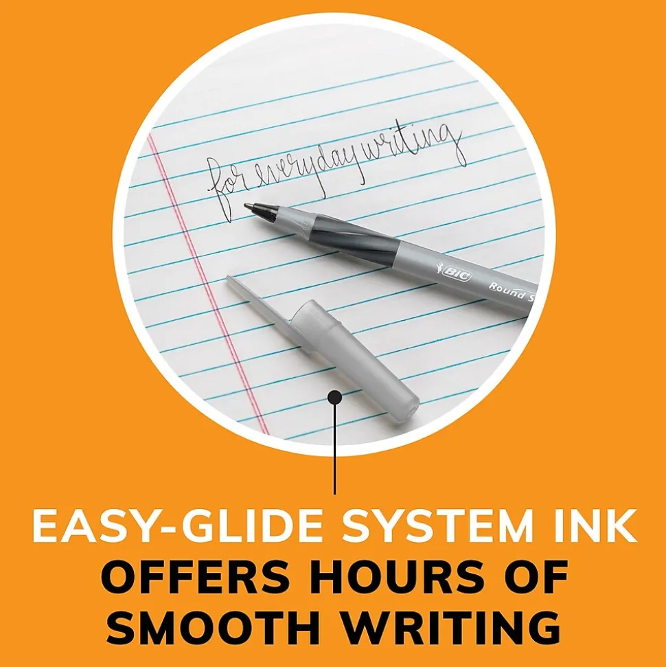 Write lengthy letters, journal entries, and other papers comfortably by using these fine-point pens. Featuring textured finger grips, these pens offer a comfortable hold and increased control when writing, while the 0.8mm fine-point tips provide enhanced precision and accuracy. These BIC Round Stic Grip Xtra Comfort black ballpoint pens come with 12 to a pack, making it easy to stock up the office, home, or classroom.